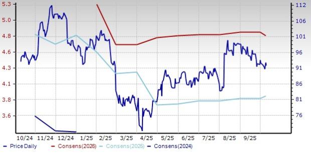 The industry’s positioning in the bottom 50% of the Zacks-ranked industries is a result of a lower earnings outlook for the constituent companies in aggregate. Looking at the aggregate earnings estimate revisions, it appears that analysts are gradually losing confidence in this group’s earnings growth potential. Since July 2025, the industry’s earnings estimates for 2025 have decreased to $4.20 per share from $4.25.