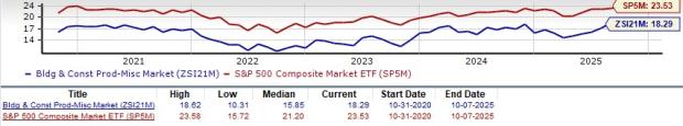 On the basis of the forward 12-month price to earnings, which is a commonly used multiple for valuing building products’ stocks, the industry is trading at 18.29X versus the S&P 500’s 23.53X and the sector’s 19.76X.