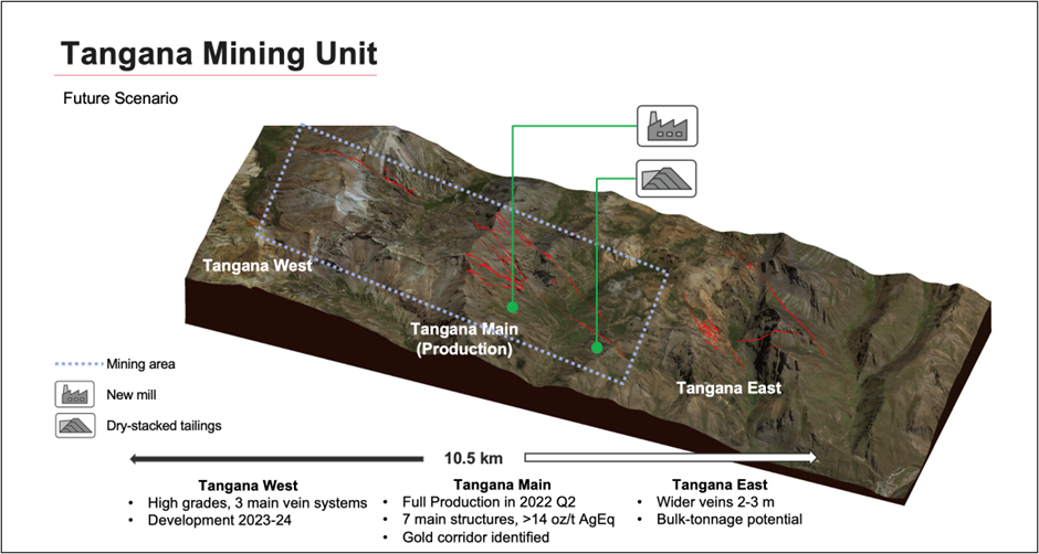Figure 1. Future scenario of Tangana Mining Unit outlined by the 2025 PEA with new mill and dry stacked tailings