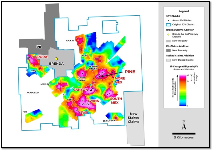 Amarc also announces the expansion of the JOY District strategic land package that will now also include the Brenda Property, a portion of the PIL Property and three additional mineral claims staked by Amarc (Figure 1).