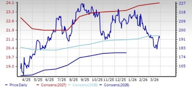 Penske currently carries a Zacks Rank #3 (Hold). The Zacks Consensus Estimate for 2026 and 2027 sales implies year-over-year growth of 5.5% and 2.5%, respectively. While the consensus mark for 2026 EPS calls for a 1% year-over-year decline, the same for 2027 points to a 7% uptick from projected 2026 levels.