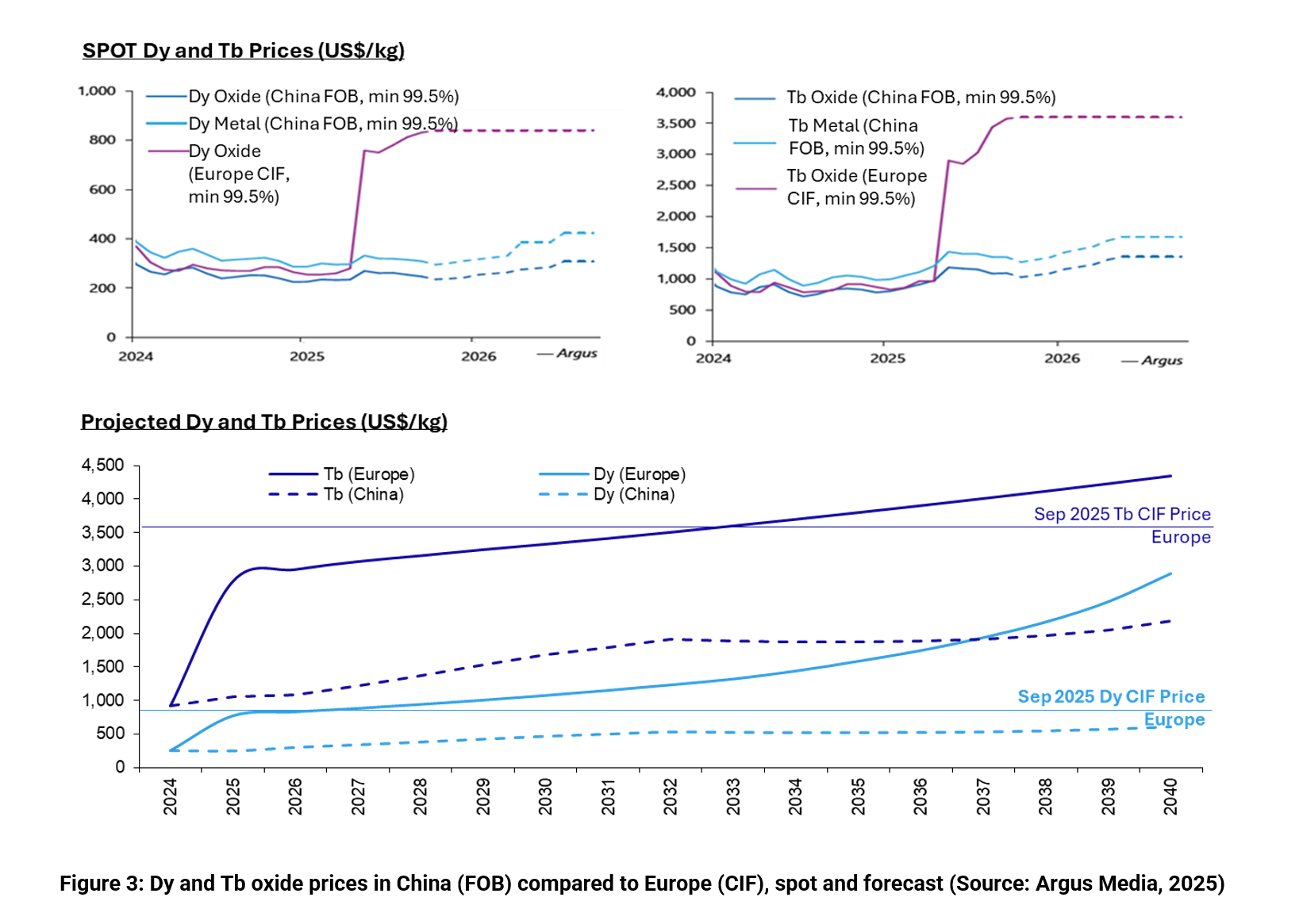 The REE price forecast provided by Argus Media based on European prices (excluding China) aligns well with market environment of export restrictions from China on HREEs [1] and future supply/demand dynamics.