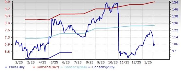 The industry’s positioning in the bottom 50% of the Zacks-ranked industries is a result of a lower earnings outlook for the constituent companies in aggregate. Looking at the aggregate earnings estimate revisions, it appears that analysts are gradually losing confidence in this group’s earnings growth potential. Since November 2025, the industry’s earnings estimates for 2026 have decreased to $1.86 per share (from $1.87).