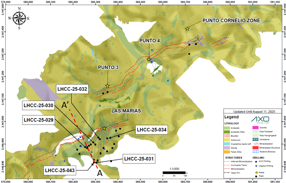 HALIFAX, NS / ACCESS Newswire / August 18, 2025 / Axo Copper Corp. (TSXV:AXO) ("Axo", "Axo Copper" or the "Company") is pleased to announce the first batch of assay results from its recently initiated Phase II drill program at the La Huerta Project. The Company is also providing an exploration update on current drilling and visual results, which have seen copper mineralization in deeper drillholes, as Axo has begun stepping out down-dip below Las Marias.