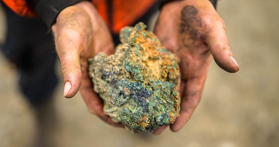 Figure 5: Copper gossan from the Hailstorm Prospect. This is massive chalcocite (copper sulfide) and returned a laboratory assay grade of >50% Cu, 61g/t Ag (Sample Y007193, 50% Cu is the upper limit of the assay technique used).