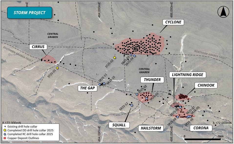 The first diamond drill hole, ST25-02, has been completed for the 2025 program and was designed to test the Cyclone Deeps target within the Central Graben area. The drill hole aimed to follow up earlier intersections of high-grade copper mineralization and to build further evidence for the large-scale copper potential at depth.