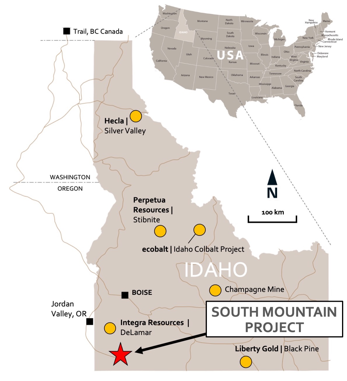South Mountain is a polymetallic development project focused on high-grade zinc and is located approximately 70 miles southwest of Boise, Idaho (See Figure 1). The Project was intermittently mined from the late 1800s to the late 1960s and its existing underground workings remain intact and well maintained. Historic production at the Project has largely come from high-grade massive sulphide bodies that remain open at depth and along strike. According to historical smelter records, approximately 53,642 tons of mineralized material has been mined to date. These records also indicate average grades; 14.5% Zn, 363.42 g/t Ag, 1.98 g/t Au, 2.4% Pb, and 1.4% Cu were realised (See NI 43-101 Technical Report: Updated Mineral Resource Estimate for the South Mountain Project, dated June 15, 2021, Section 6.4 - Table 6.3 for more details. Available on the BeMetals website and at www.sedar.com). Thunder Mountain purchased and advanced the South Mountain from 2007 through 2019, with expenditures into the Project of approximately US$12million.