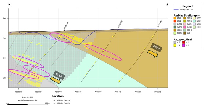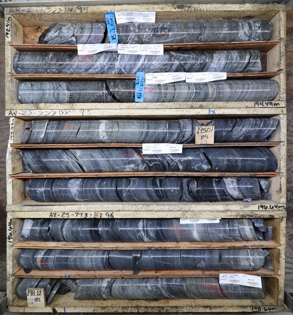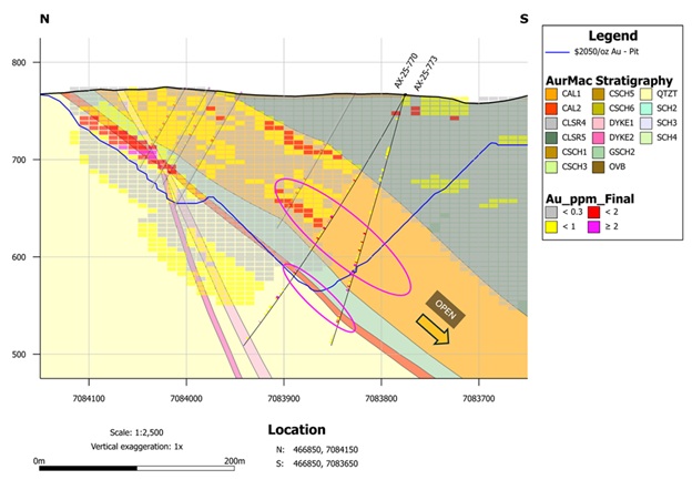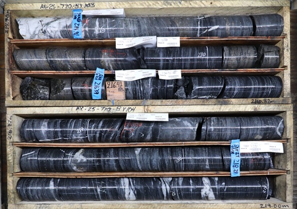 AX-25-773 - 1.90 g/t over 31.2m within 1.10 g/t Au over 66.6m, including high-grade of 3.79 g/t Au over 7.6m, and 0.95 g/t Au over 29.6m, with high-grade intervals of 3.64 g/t au over 6.7m and 4.37 g/t Au over 5.2m;