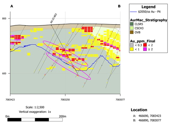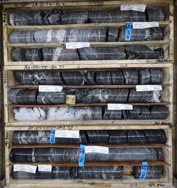 AX-25-803 - 2.02 g/t Au over 16.3m within 1.64 g/t Au over 22.3m, including high-grade of 5.60 g/t Au over 4.4m (Note: assays pending from top 100m of hole)