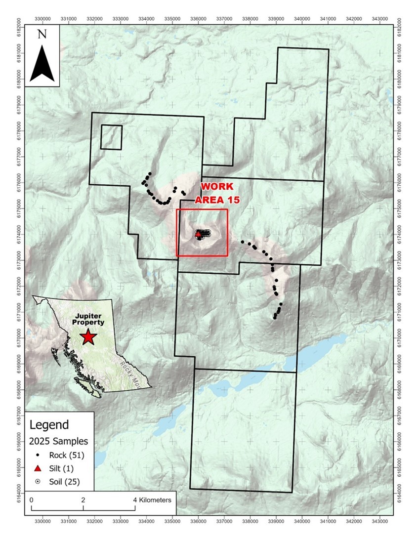 Figure 1. Jupiter Property showing location of 2025 samples.
