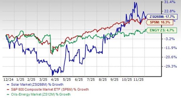The Zacks Solar industry can be fundamentally categorized into two groups of companies. While one is involved in designing and producing high-efficiency solar modules, panels and cells, the other is engaged in installing grids and, in some cases, entire solar power systems. The industry also includes a handful of companies that manufacture inverters for solar power systems, which convert solar power from modules into electricity required by electric grids. Per a report by the Solar Energy Industries Association (“SEIA”), published on Dec. 8, 2025, solar accounted for 58% of all new electricity-generating capacity added to the U.S. grid through the third quarter of 2025, with more than 30 gigawatt (GW) installed. Hence, it remains the nation's dominant form of new generating capacity.