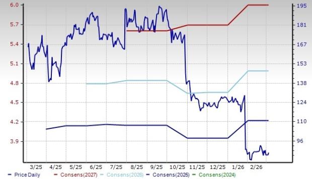 The Zacks Consensus Estimate for the company’s fiscal 2026 earnings is pegged at $2.63 per share, indicating year-over-year growth of 25.2%. The stock has gained 13.5% in the past year.