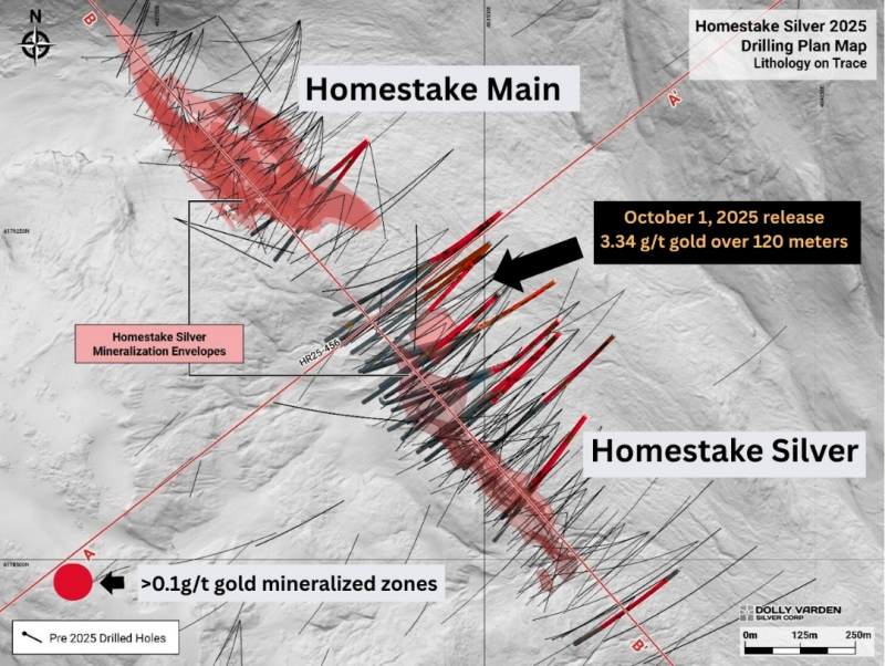 "These gold results from a step-out hole at the Homestake Silver Deposit confirm that the deposit continues to grow beyond the current mineral resource estimate,” stated Shawn Khunkhun, CEO of Dolly Varden Silver in the October 1, 2025 press release.