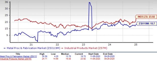 The group’s Zacks Industry Rank, which is basically the average of the Zacks Rank of all the member stocks, indicates upbeat prospects in the near term. The Zacks Metal Products - Procurement and Fabrication industry, which is a seven-stock group within the broader Industrial Products Sector, currently carries a Zacks Industry Rank #19, which places it at the top 8% of 243 Zacks industries. Our research shows that the top 50% of the Zacks-ranked industries outperforms the bottom 50% by a factor of more than 2 to 1.