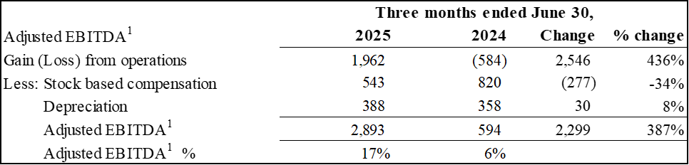 Adjusted EBITDA1 increased 387% y/y to $2.9M or 17% of revenue