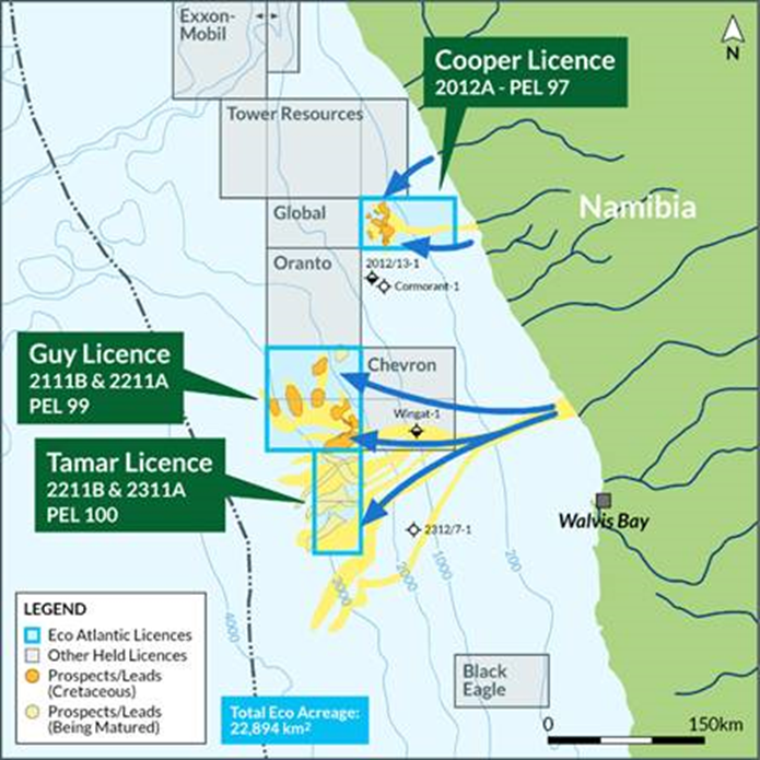 Eco Atlantic is a TSX-V and AIM-quoted Atlantic Margin-focused oil and gas exploration company with offshore license interests in Guyana, Namibia, and South Africa. Eco aims to deliver material value for its stakeholders through its role in the energy transition to explore for low carbon intensity oil and gas in stable emerging markets close to infrastructure.