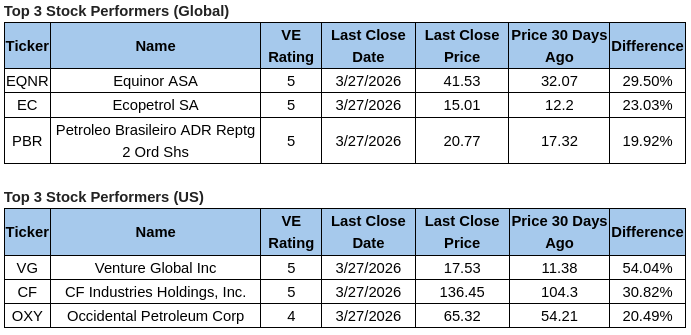 U.S. equity markets experienced broad-based weakness this week, with growth-oriented and technology-heavy segments leading the decline, as reflected in notable pullbacks across major ETFs such as QQQM, XLK, and XLC. Despite this overall softness, pockets of strength emerged in energy and materials, where rising commodity prices and continued geopolitical sensitivities supported gains in XLE and XLB. The divergence in sector performance highlights an ongoing rotation beneath the surface, as investors selectively reposition toward inflation-sensitive and resource-linked assets while trimming exposure to high-multiple growth sectors. Meanwhile, individual stock performance continues to reinforce this trend, with energy-linked names delivering strong short-term gains, underscoring the market’s current preference for tangible asset exposure over broader index participation.