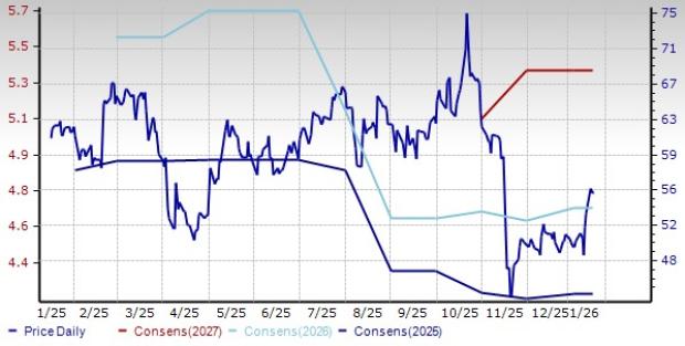The industry’s positioning in the bottom 50% of the Zacks-ranked industries is a result of a lower earnings outlook for the constituent companies in aggregate. Looking at the aggregate earnings estimate revisions, it appears that analysts are gradually losing confidence in this group’s earnings growth potential. Since November 2025, the industry’s earnings estimates for 2026 have decreased to $4.50 per share from $4.67.