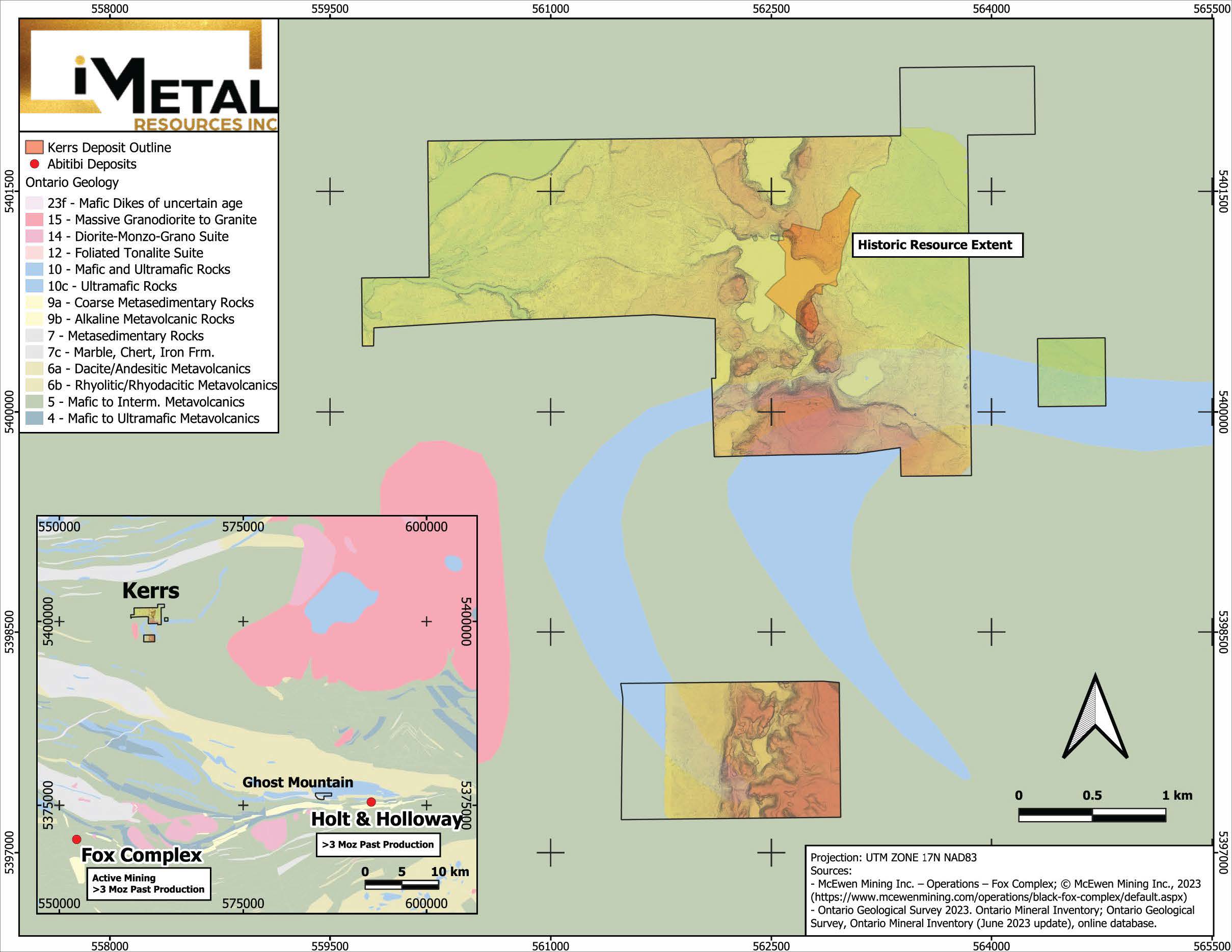 VANCOUVER, BC / ACCESSWIRE / October 19, 2023 /iMetal Resources Inc. (TSX.V:IMR) (OTCQB:IMRFF) (FRANKFURT:A7V) ("iMetal" or the "Company") is pleased to announce completion of both a digitally-enhanced prospecting (DEP) and a data reprocessing and remodeling program at the Company's Kerrs Gold project, which lies within the prolific Abitibi Greenstone Gold Belt 90 kilometres east-northeast of Timmins, Ontario. These programs were designed to generate new and more precise targets for upcoming drilling programs.