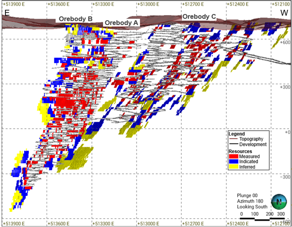 Figure 9. São Sebastião Deposit - Longitudinal Projection of Resources