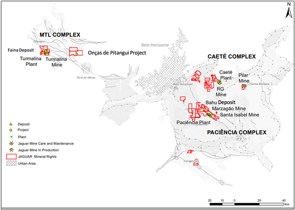 The location map in Figure 1 indicates the location of the Company's production complexes and respective mines and deposits. The Mineral Rights are situated inside a 60 km radius from Belo Horizonte, the state capital of Minas Gerais, Brazil.