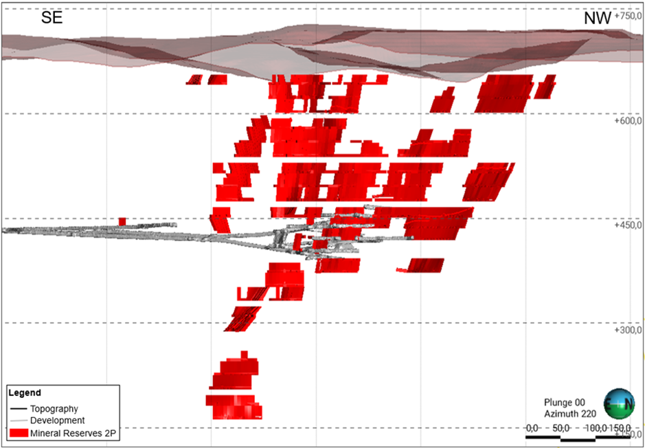 Figure 3. Turmalina Gold Mine - Longitudinal Projection of Reserves