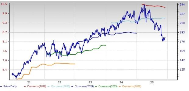 Earnings of Marsh & McLennan have grown 13.4% in the past five years. The expected long-term earnings growth rate is 6.1%. The Zacks Consensus Estimate for 2025 and 2026 earnings indicates a 9.2% and 6.9% year-over-year increase, respectively. The consensus estimate for 2025 earnings has moved 0.2% north in the past 60 days. This insurance broker delivered a trailing four-quarter earnings surprise of 3.45%, on average. The stock has lost 19.5% over the past year.