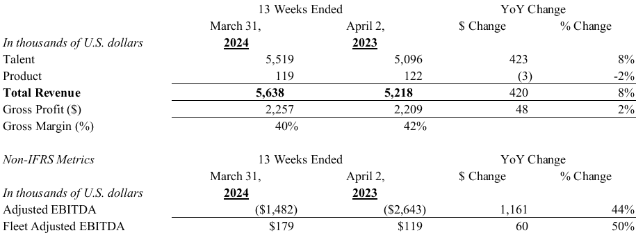 Boston, MA, May 20, 2024 (GLOBE NEWSWIRE) -- MiniLuxe Holding Corp. (TSXV: MNLX) today announced its financial results for the 13 weeks ended March 31, 2024 (“Q1 2024”). The fiscal year of MiniLuxe is a 52-week reporting cycle ending on the Sunday closest to December 31, which periodically necessitates a fiscal year of 53 weeks; fiscal years referred to in this release consist of 52-week periods. Unless otherwise specified, all amounts are reported in U.S. dollars.