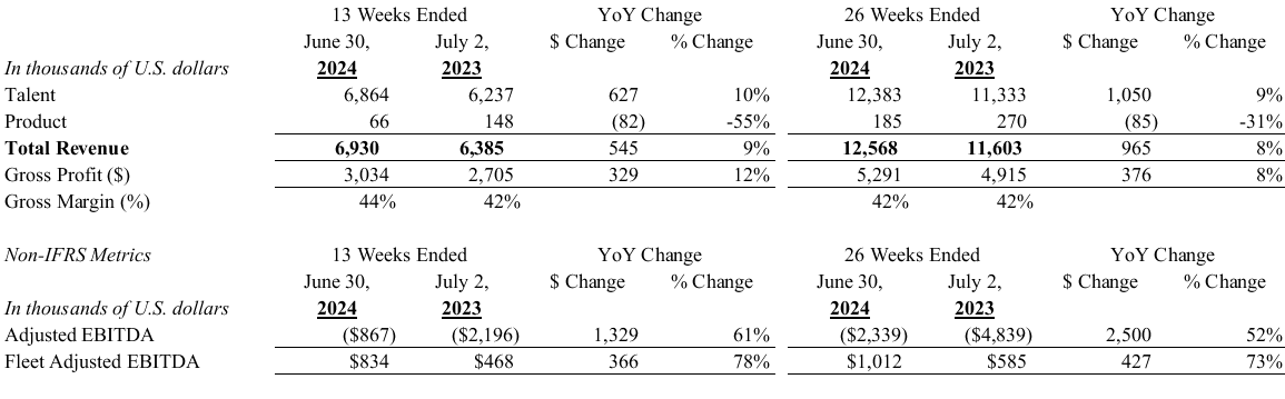 Boston, MA, Aug. 19, 2024 (GLOBE NEWSWIRE) -- MiniLuxe Holding Corp. (TSXV: MNLX) today announced its financial results for the 13 and 26 weeks ended June 30, 2024 (“Q2 2024” and “H1 2024”, respectively). The fiscal year of MiniLuxe is a 52-week reporting cycle ending on the Sunday closest to December 31, which periodically necessitates a fiscal year of 53 weeks; fiscal years referred to in this release consist of 52-week periods. Unless otherwise specified, all amounts are reported in U.S. dollars.