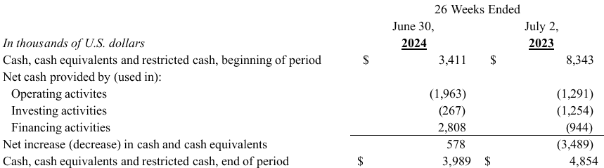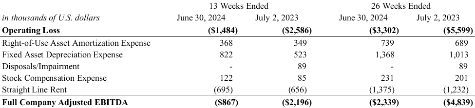 The following table outlines the consolidated statements of loss and comprehensive loss for the thirteen and 26 weeks ended June 30, 2024 and July 2, 2023: