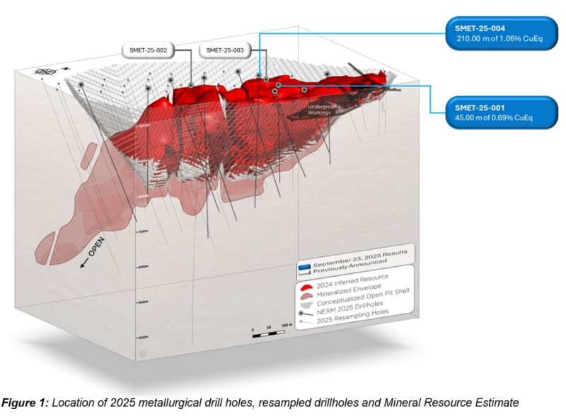 Five days earlier, on September 18, 2025 NEXM released the assay results from the first 2 holes of the 12-hole metallurgical drilling program at Selkirk.