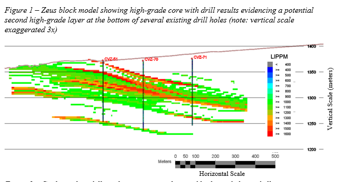 Based on the updated geological model, we are developing a drilling plan to test the high-grade core area at depths below the existing drilling and we expect to run a drill program at Zeus this quarter to explore this potential."
