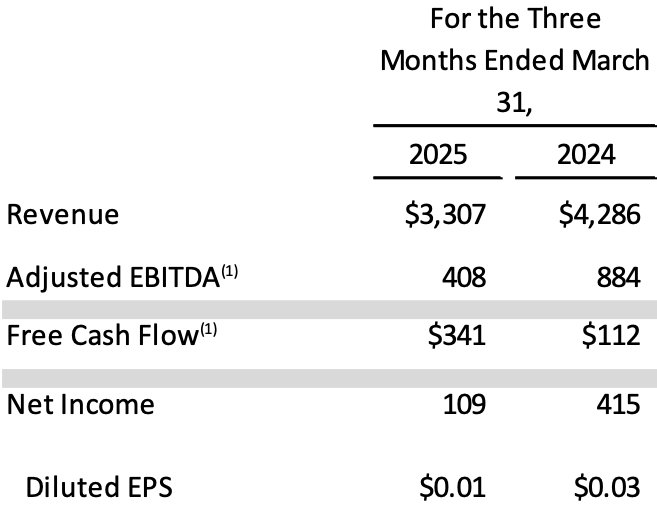 ❖ First Quarter 2025 Adjusted EBITDA(1) of US$408,000, 12% Adjusted EBITDA Margin