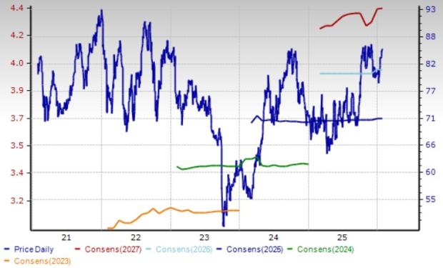 Ameren Corporation: St. Louis, MO-based Ameren, a utility that generates and distributes electricity and natural gas to residential, commercial, industrial and wholesale end markets in Missouri and Illinois. It expects capital deployment in excess of $26.3 billion in different projects from 2025 to 2029. Ameren’s growth has been led by its systematic and consistent investments in growth projects and infrastructural upgrades.