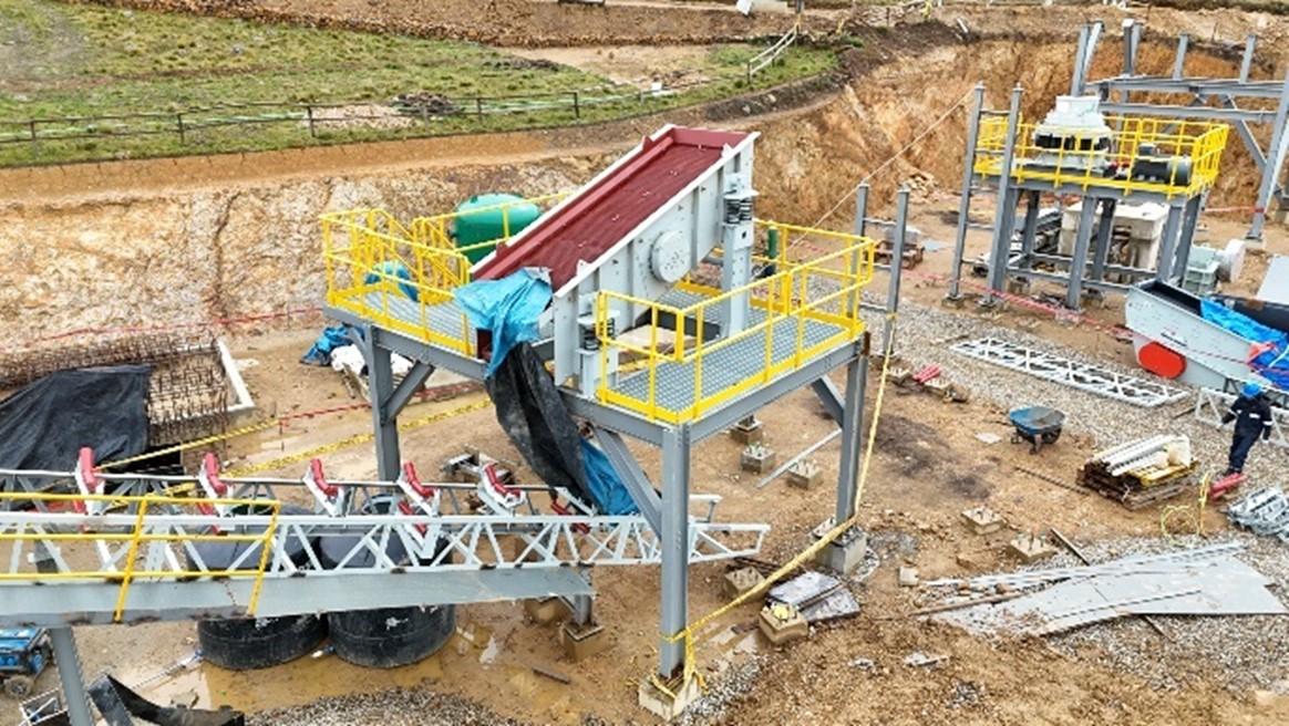 Assembly of the crushing circuit is well advanced. The cone crusher and vibrating screen have been installed, along with the fine ore bin and several conveyors. The run-of-mine ore bin is on site and undergoing pre-assembly, while installation of the primary crusher is currently underway.