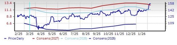 Beyond refining, Valero has a sizable renewables footprint. It owns 12 ethanol plants in the U.S. Midwest with a capacity of roughly 1.7 billion gallons per year. It holds a 50% stake in Diamond Green Diesel, North America’s largest renewable diesel producer, which also makes sustainable aviation fuel. The Zacks Consensus Estimate for 2026 earnings of Valero indicates 15.7% growth. It beat the Zacks Consensus Estimate for earnings in each of the last four quarters, with the average being 45.4%. This #3 Ranked company’s shares have increased 47.1% in a year.