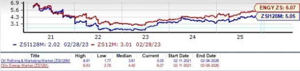 Phillips 66: Headquartered in Houston, TX, Phillips 66 is among the world’s largest independent refiners and operates as a broad-based energy company. Its businesses range across refining, marketing, midstream operations and petrochemicals, supported by nearly 2 million barrels per day of refining capacity in the United States and Europe. The Zacks Rank #3 (Hold) company distributes fuels through thousands of retail outlets worldwide and owns a 50% stake in Chevron Phillips Chemical. Since its 2012 spin-off from ConocoPhillips, Phillips 66 has focused on combining scale with disciplined, strategic expansion.