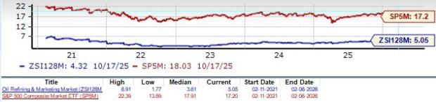 Marathon Petroleum: It is a major independent refiner, transporter and marketer of petroleum products. Marathon Petroleum benefits from access to lower-cost crude sourced from the Permian, Bakken and Canada, which supports strong margins. This Zacks Rank #3 company’s powerful cash flow generation, paired with its consistent and sizable shareholder returns, remains a central factor driving investor confidence and supporting the stock’s long-term upside.