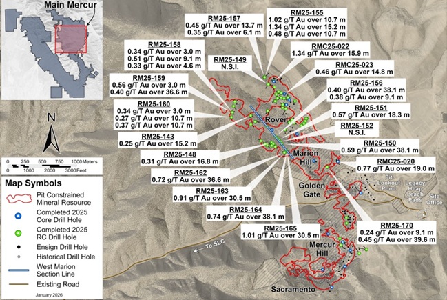 Figure 1: Main Mercur Drill Plan Map - February 10th, 2026 Results