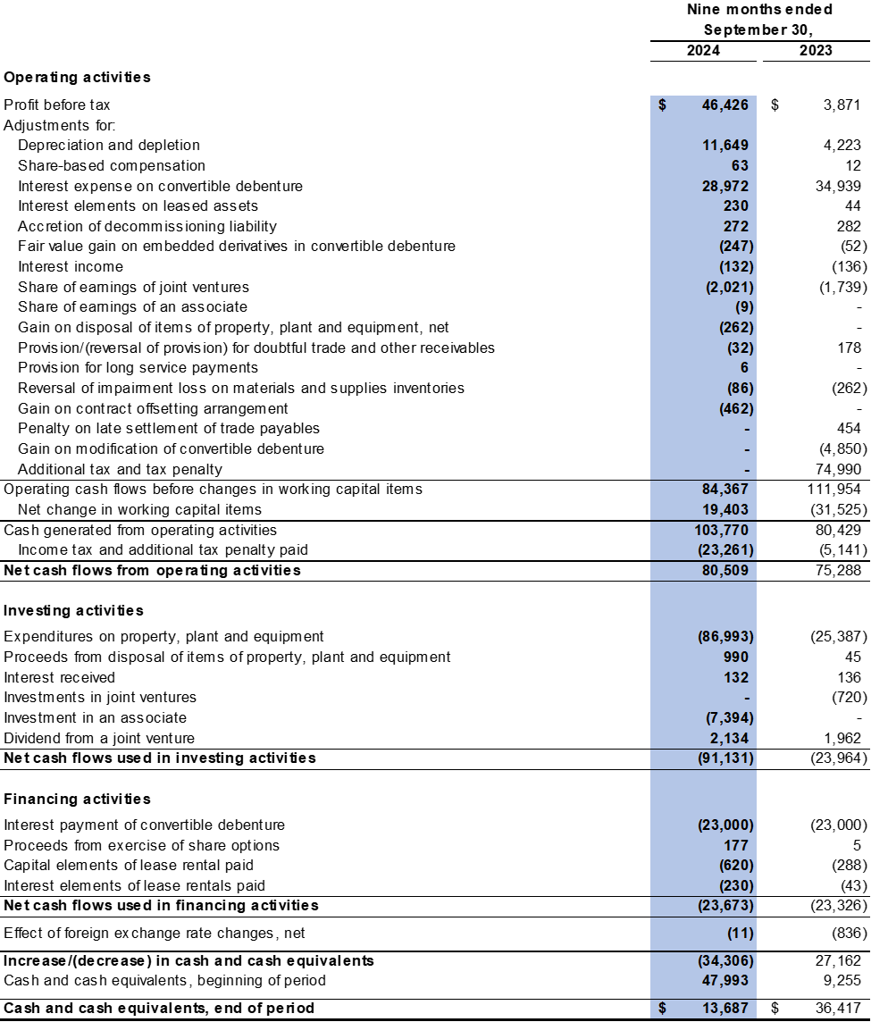 Revenue was $318.7 million in the first nine months of 2024 compared to $243.0 million in the first nine months of 2023. The financial results were impacted by increased sales volume, as a result of expansion of its sales network, diversification of its customer base and expansion of the categories of coal products in its portfolio.