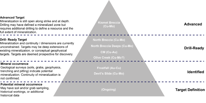 Expanded Phase II drill program set to begin Spring 2026, designed to expand the resource through the Kismet Corridor (KismetNorth BrecciaFrostfall), along with exploratory drilling at the CM, Olive Creek, and Devils Slide targets