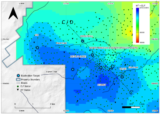 Figure 6: MT & ELF Results with 2026 Drill Targets