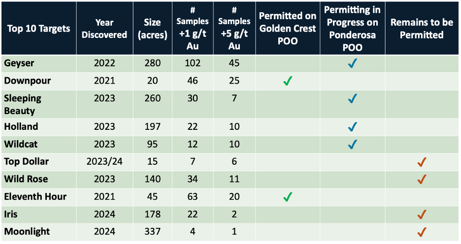 Solitario has identified ten high priority surface targets as shown in the table below. Two of the targets, Downpour and Eleventh Hour, were drilled this year. Four new targets are currently being permitted and are scheduled to be drilled in 2025. The other four high-priority targets may undergo future permitting following further review. In addition to the ten currently defined high-priority targets, Solitario has identified another dozen promising target areas that require additional surface exploration work. Furthermore, Solitario's future drilling has the potential to intersect the highly prolific Homestake formation, situated below the lower Deadwood formation.