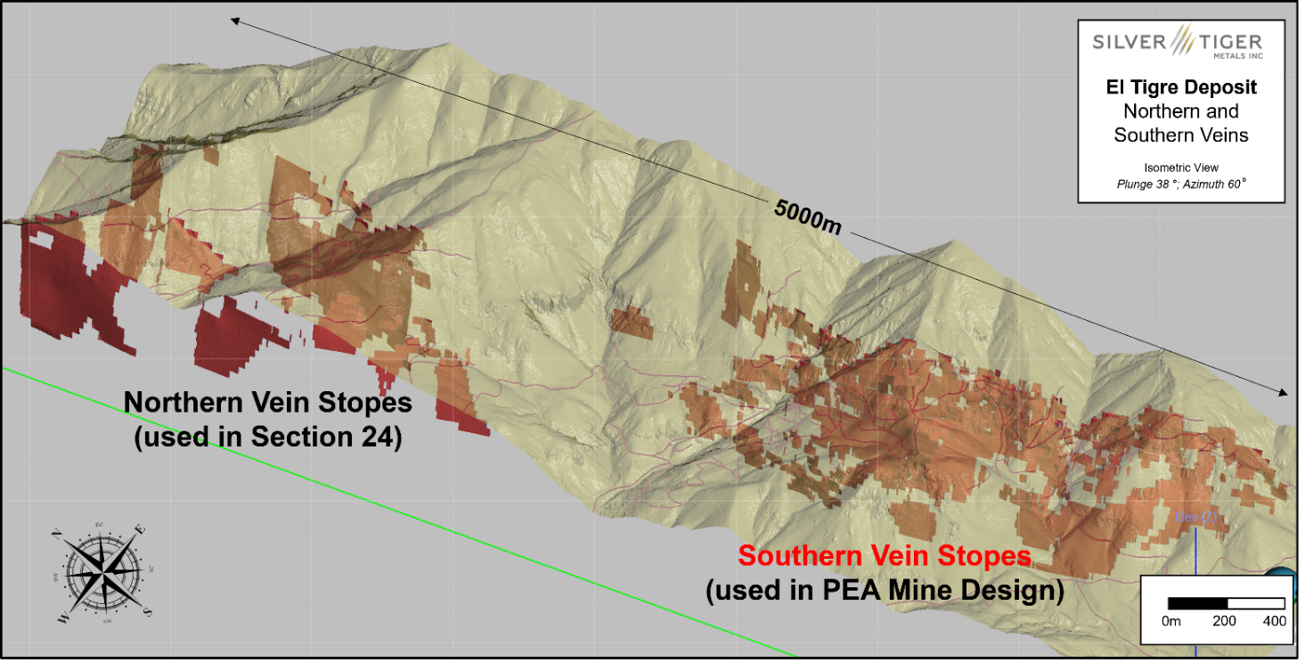 HALIFAX, NS / ACCESS Newswire / January 20, 2026 / Silver Tiger Metals Inc. (TSXV:SLVR) and (OTCQX:SLVTF) ("Silver Tiger" or the "Corporation") is pleased to announce the results of a Preliminary Economic Assessment ("PEA") on the underground at El Tigre and an updated Pre-Feasibility Study ("PFS") on the Stockwork Zone for its 100% owned, silver-gold El Tigre Project (the "Project" or "El Tigre") located in Sonora, Mexico. The bolt-on PEA is centred on the underground mining economics of the high-grade El Tigre, Sulphide, Black Shale and Seitz Kelly zones. The underground PEA and updated PFS is based on new consensus economics metal prices of $38 per ounce silver and $3,200 per ounce gold. The PEA mine design can be constructed independently of the Stockwork Zone development and is focused on the underground Mineral Resource. Prospective areas exist outside of the areas defined by the PEA and PFS with the historic "El Tigre North Mine" Mineral Resource located 700 metres to the North (see Exploration Potential section below).