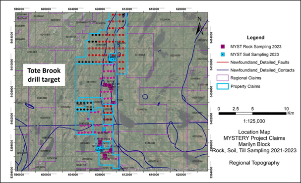 The Company signed a Definitive Agreement in September 2021 with two parties (the "Vendors") to acquire 100% of three early-stage gold exploration properties, Mystery, Till and Marilyn, (the "Property" or the "Properties") located near Grand Falls, Newfoundland and Labrador, Canada, 20-25 kilometres west of New Found Gold Corp.'s Queensway project and 15-35 kilometres south of Sokoman Minerals Corp.'s Moosehead gold project. The recently staked claims are contiguous to this property and subject to first rights under the 5 km Area of Interest in the Agreement.