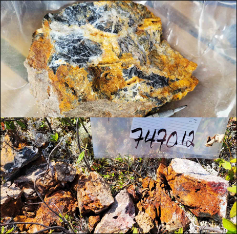 Early work in 2003-2004 by Rubicon Minerals on the Mystery Lake area reported massive to semi-massive occurrences of arsenopyrite and gold assay values to 17,678 ppb (17.7 g/t Au). Historical assays were reported for 123 samples collected by the Vendor from Mystery and Marilyn (see Press Release of September 14, 2021). Eighteen samples reported Au >0.5 g/t (max. 12.5 g/t Au). Cu values were reported up to 9.85% with minor Ag, Pb and Zn. Arsenic was highly anomalous in thirty-six samples reporting over 2,200 ppm upper limit for Inductively Coupled Plasma (ICP-OES) analysis, strongly associated with elevated Au values and displayed as minor to abundant arsenopyrite.