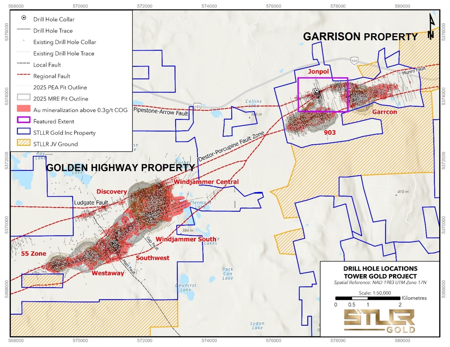 Toronto, Ontario--(Newsfile Corp. - April 27, 2026) - STLLR Gold Inc. (TSX: STLR) (OTCQX: STLRF) (FSE: O9D) ("STLLR" or the "Company") is excited to report additional assay results from its 2026 drilling program at the Jonpol Deposit ("Jonpol") at the Garrison Property of the Tower Gold Project ("Tower" or the "Project") in the Timmins Mining Camp in Ontario, Canada.
