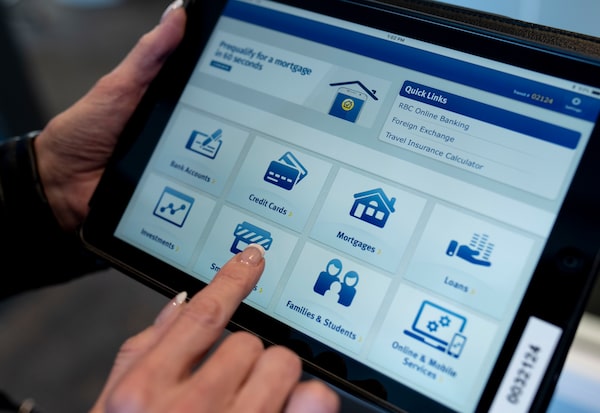 RBC's mobile platform is seen on an iPad that advisors can use to educate and enable clients to use online banking at the Royal Bank of Canada at Place D'Orleans.Justin Tang/The Globe and Mail