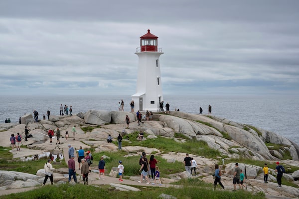Visitors at the lighthouse in Peggy's Cove, N.S., in 2023. Occupancy rates were up at Canadian hotels and short-term rentals in June compared with the same month a year earlier.Darren Calabrese/The Canadian Press