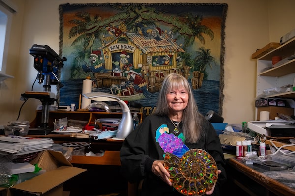 Entrepreneur Chris Bell displays ammolite gems at her home studio in North Sydney, N.S., on Friday. Ms. Bell says she has reaped little if any benefit from having products compliant with the USMCA.Steve Wadden/The Globe and Mail